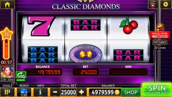 Twoim celem jest zebranie wszystkich nagród i awansowanie na codziennej liście liderów automatów do gier w kasynie. Możesz również mieć szczęście i wygrać nagrodę za jackpot. Ta gra jest wypełniona specjalnymi bonusami. Każdego dnia otrzymasz codzienną nagrodę. Możesz otrzymać bonus, jeśli masz szczęście, a także wygrać nagrodę, jeśli jesteś najlepszy.